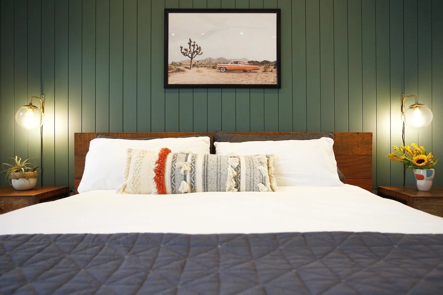 This guest house located in East Austin was designed and intended for short-term rental use. The kitchenette has all the essentials one needs for a short stay, with top-of-the-line appliances. We incorporated fun, geometric cement tiles for interest, as well as a shiplap headbaoard accent wall in the master bedroom. The vertical subway tile layout for the second bath, draws the eye up toward the skylight feature with sleek and minimal finish outs. The overall vibe for this eclectic short-term rental was desert-chic with a modern-minimalistic approach.